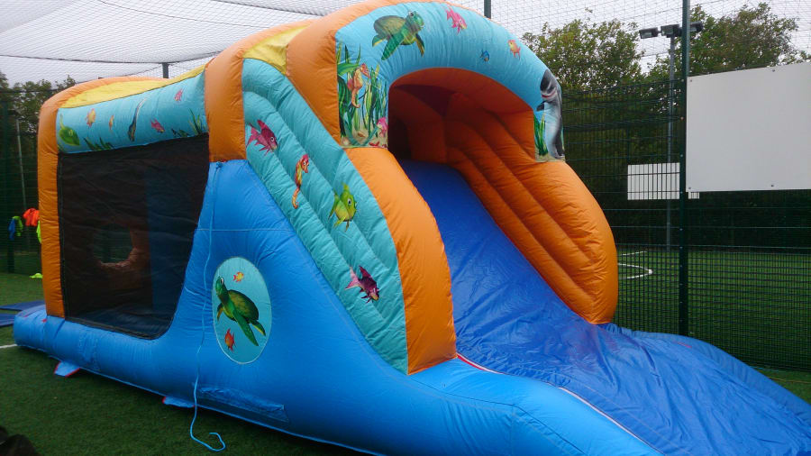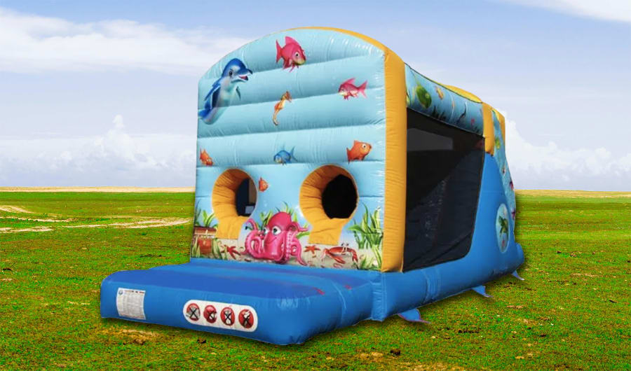 Our mini obstacle course is now available with the fantastic undersea themed artwork. Climb through the squeeze tubes, enter the bounce area with bish bash pillars and climb up to the exiting slide finish.